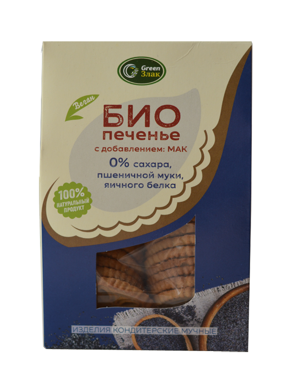 Био печенье с добавлением «Мака», 0% сахара, пшеничной муки, яичного белка.