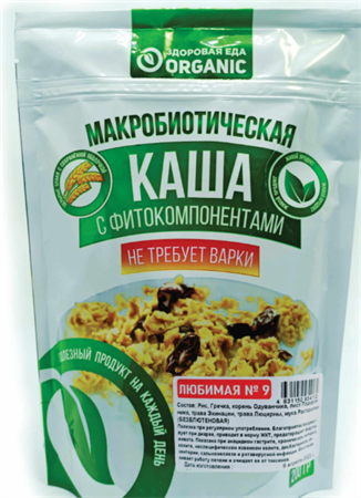 Макробиотическая Каша ORGANIC с фитокомпонентами №9 "Любимая" полезна для ежедневного питания. Благоприятно воздействует при диарее, приводит в норму ЖКТ, предотвращает вздутие живота.