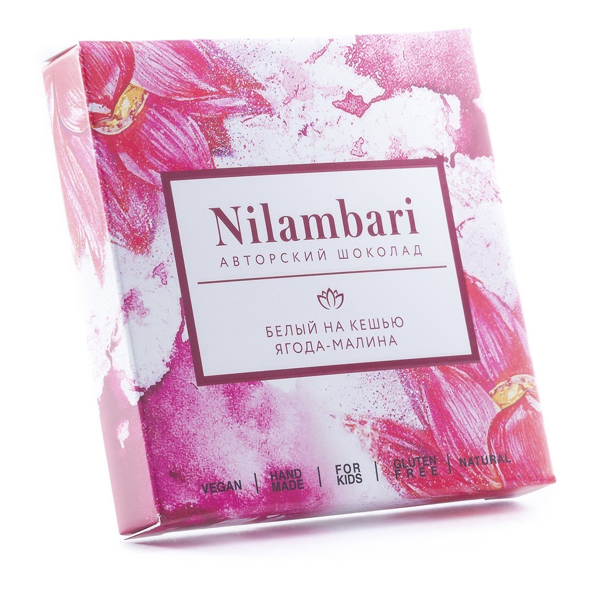Шоколад белый на кешью Ягода-малина, 65 г, Nilambari