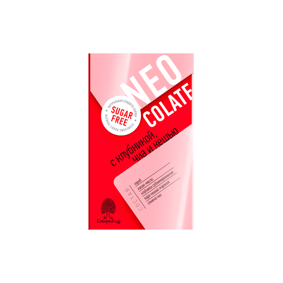 NEOcolate — совершенно новая разработка вкусного и полезного шоколада. Вместо обычного сахара используется натуральный кэроб. Кэроб — высушенные на солнце плоды рожкового дерева. Не содержит кофеин,теобромин, глютен, ГМО. Благотворно влияет на работу всего организма. NEOcolate подходит для веганов, детей, беременных и тех, кому рекомендовано снизить потребление чая, кофе. В составе каждой плитки минимум ингредиентов, нет подстластителей, улучшителей и других вредных добавок.