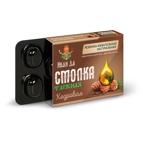 Натуральная жевательная резинка, изготовленная из живицы кедра (Pinus sibirica). Без консервантов, подсластителей и красителей.
