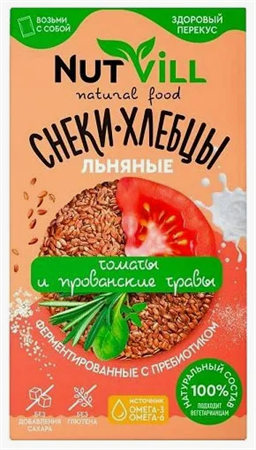 Снеки-Хлебцы льняные Томаты и прованские травы без глютена, 70г, Nutvill