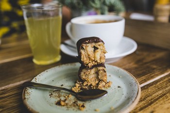 Состав: мука безглютеновая, мука миндальная, сироп топинамбура, кокосовое масло, арахис, кокосовое молоко, лимонный сок, шоколад темный.