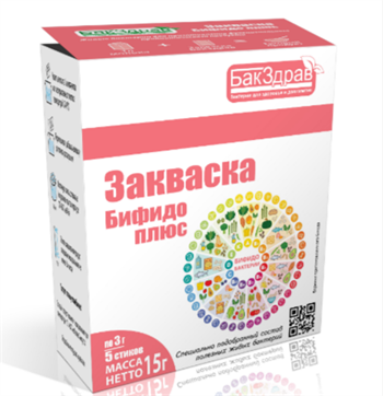 Пробиотик-закваска Бифидо Плюс содержит 6 штаммов бифидобактерий, свойственных нормофлоре человека. С помощью закваски можно приготовить живой активный пробиотик, способствующий нормализации пищеварительных, иммунных и обменных процессов в организме. Не содержит ГМО, ГММ и консервантов.