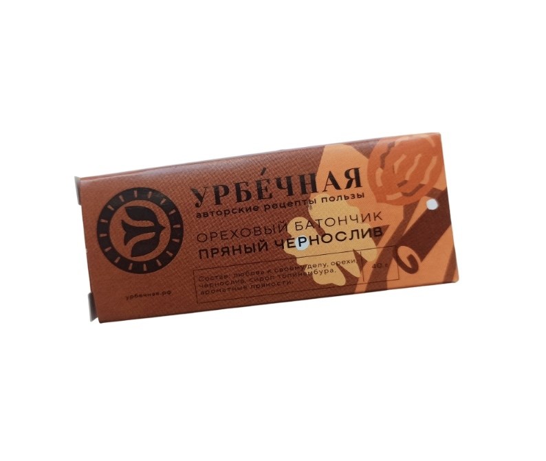 Батончик ореховый Пряный чернослив, 40г, Урбечная