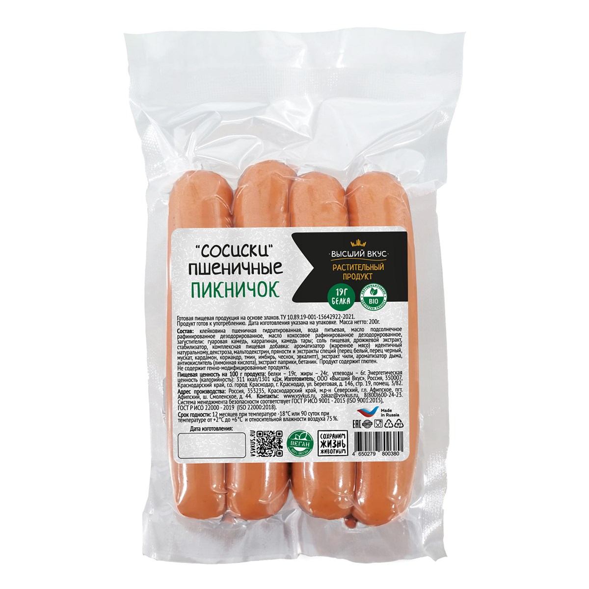 Сосиски пшеничные Пикничок, 200г, Краснодар